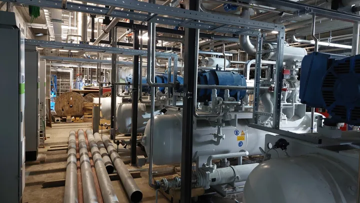 For our client in Belgium we have made a NH3/CO2 installation. This installation has a freeze capacity of 390 kW and a cooling capacity of 1850Kw. Besides cooling the cool- and freeze cells, the installation can also cool and heat up the office. The non-cooled hall is also provided with heat from our installation.
