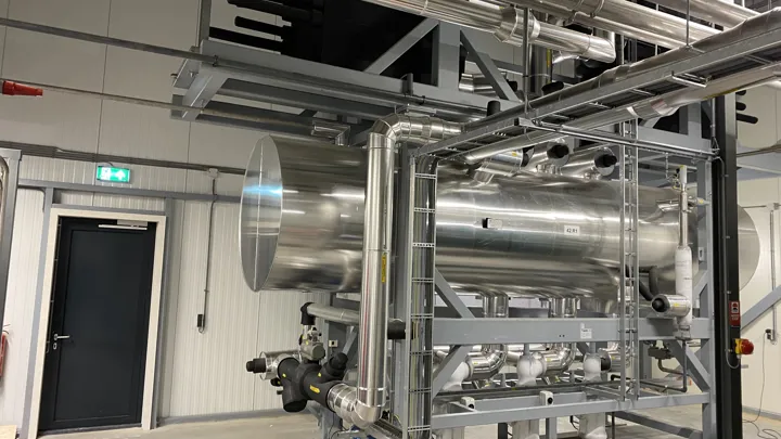 Wij hebben hier een ammoniak/CO2 installatie gerealiseerd. Wat wordt er gekoeld? 2 expeditie ruimtes, een productiecel, een ruimte voor de reiniging van de fusten, 14 grote koelcellen, een inpakafdeling, 7 kleinere multifunctionele koelcellen en een droog/inkoelcel.