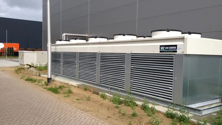 Geleverd werd een DX installatie functionerend met het koudemiddel R407F. Het machineframe met weersbestendige omkasting en een luchtgekoelde condensor werd buiten naast de hal geplaatst. De installatie verzorgt de koeling t.b.v. de uitbreiding van het in eigendom gekomen pand van Kempen Transport. De installatie is om energetische redenen verdeeld in twee temperatuurniveaus, te weten: de halkoeling en de twee koelcellen. De totaalcapaciteit van de installatie is 402 kW, is verdeeld over 3 compressoren. 1 compressor t.b.v. de cellen en 2 compressoren t.b.v. de halkoeling. De installatie wordt bestuurd door de bij Van Kempen ontwikkelde software “VK-Dynamics”.