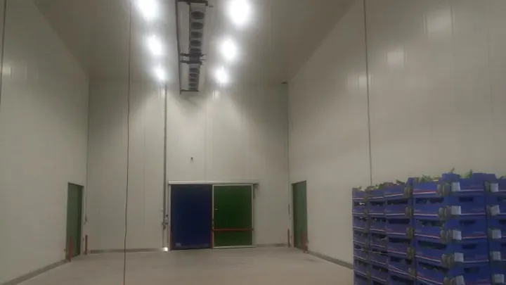 Het totaal te installeren koelvermogen is 242 kW middels een NH3-pompsysteem waarop 12 dubbelzijdig uitblazende koelers werden aangesloten. Bij deze installatie wordt zoveel mogelijk gebruik gemaakt van de afvalwarmte van de koelinstallatie. De ontdooiing van de koelers geschiedt middels heetgas ontdooiing en daarnaast is er een buffervat in de machinekamer gemonteerd voor opwarmen van water waarmee het bedrijfspand verwarmd kan worden. In de cellen wordt de CO2-concentratie continu gemeten en indien noodzakelijk zal de celventilatie worden aangestuurd.