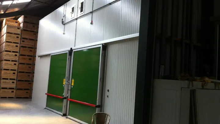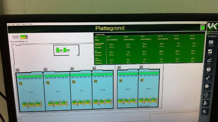 VK heeft opdracht gekregen voor het leveren en monteren van koelcelisolatie, koeltechniek en ULO techniek t.b.v. twee ULO bewaarcellen voor de bewaring van peren en appels. De twee ULO cellen zijn uitgevoerd met gasdichte koelschuifdeuren en een inspectieluik. De wanden in de cellen zijn van een stootrand voorzien. De koeltechniek van de twee nieuwe cellen is gekoppeld op de installatie die in een eerder stadium is geleverd t.b.v. vier ULO-cellen. Deze installatie functioneert met het koudemiddel R134a. De twee cellen worden bestuurd d.m.v. het PC/PLC besturingssysteem VK-Dynamics.